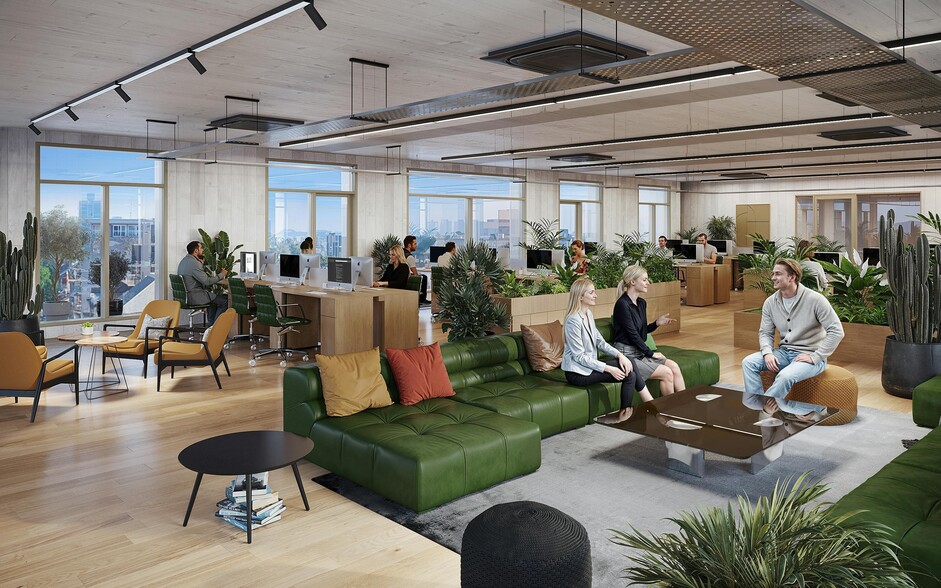 Royalty Studios has sustainability at its core. Using cross-laminated timber (CLT) instead of steel and concrete for the structure reduces the building’s carbon footprint and gives the building a unique aesthetic. High-quality, premium finishes, designed for a variety of users in the heart of Notting Hill. There is private bicycle storage, car parking, and showers available. Occupiers will also have discounted access to a gym, swimming pool, and sauna next door. Flexible leasing options, with full floors or individual suites available from 1,015 sq ft. All floors will be fitted to a Grade A standard. An additional option is for a contemporary furniture and fit out package available. Designed with DDA accessibility, on-site private parking, external bicycle storage, with separate showers and changing rooms. There is also a large attractive & peaceful landscaped garden fronting the building.
