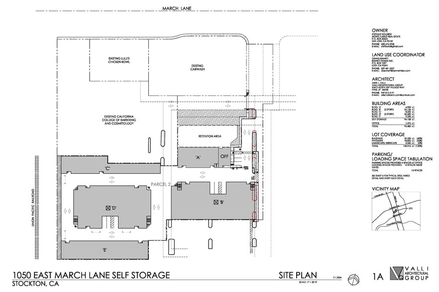 3.24 acre, fully entitle self storage development opportunity in Stockton, CA. This shovel-ready project is planned for five (5) buildings totaling 95,733 sf, with a total of 573 storage units.