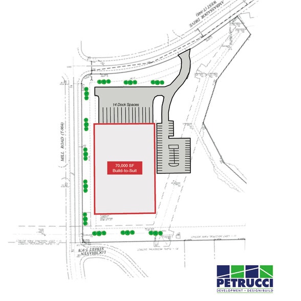 • Industrial build-to-suit opportunity up to 70,000 SF or potential for truck parking and outdoor storage • Proposed 32’ clear height • New construction in professional business park • Developer and Builder: J.G. Petrucci Company, Inc. • Light industrial zoning • Approved uses include manufacturing, construction, packaging, outside storage, wholesale, repair service, printing, industrial equipment sales, trade school, research & development, and pharmaceuticals • Public water and sewer • Conveniently located right off Route 100 and minutes to Routes 22, 222, and I-78