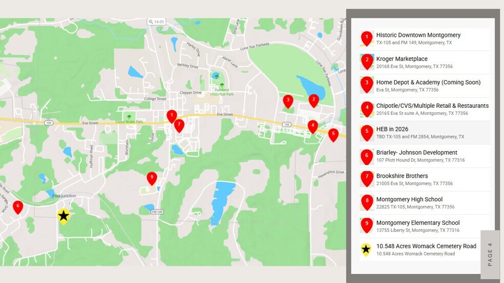 Located just 1.8 miles from historic downtown Montgomery, this 10.548 acre unrestricted tract offers a rare opportunity to invest in a high-growth area. Positioned directly across from the future Briarly master-planned community by Johnson Development—the same team behind Woodforest—and near another new residential project, this property is in the heart of Montgomery’s expansion corridor. The land has been selectively cleared, leaving clusters of mature trees and a flexible layout that’s ideal for future development. Zoned to Montgomery ISD and just minutes from both Montgomery High School and Montgomery Elementary, this tract can be subdivided to suit your plans. Positioned just outside city limits but inside the ETJ, electricity in on-site with public utilities found close by.