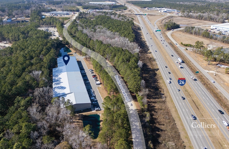 This industrial facility offers three available suites with ceiling heights ranging from 24 to 29 feet, ideal for high-bay storage and distribution. The property includes four ground-level drive-in doors (12’ x 14’), a wet sprinkler system, 3-phase power, and ±500 SF of office space with expansion potential. Zoned Heavy Industrial, the site is well-suited for manufacturing, warehousing, or distribution operations. Strategically located along Business Park Road with immediate access to I-26, the property provides excellent regional connectivity. It is just 8 miles from the Volvo Car Campus and approximately 20 minutes from Charleston International Airport, Boeing, and South Carolina Port Authority terminals, including Wando Welch, Hugh K. Leatherman, and North Charleston terminals. This prime location ensures efficient access to major transportation routes and port facilities, making it an ideal choice for logistics-driven businesses.