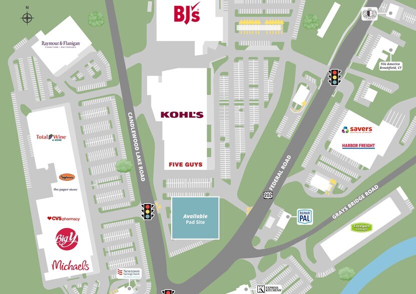 Regional destination for shoppers from Danbury, New Milford, and surrounding Litchfield County. Surrounded by major national retailers that act as massive traffic generators, including Costco, Kohl's, BJ's Wholesale Club, TJ Maxx, and ShopRite.Nearby QSR includes Five Guys (located at the site), Chick-fil-A, and McDonald's.