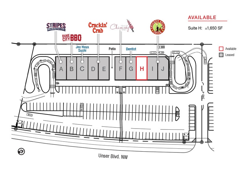 - Multiple access points to property - Located within two signalized intersections: Unser & McMahon (56,500 CPD) and Unser & Bandelier (23,300 CPD) - .35 miles from Rust Presbyterian Hospital and 1.17 miles from Lovelace Westside & UNM Care Hospitals