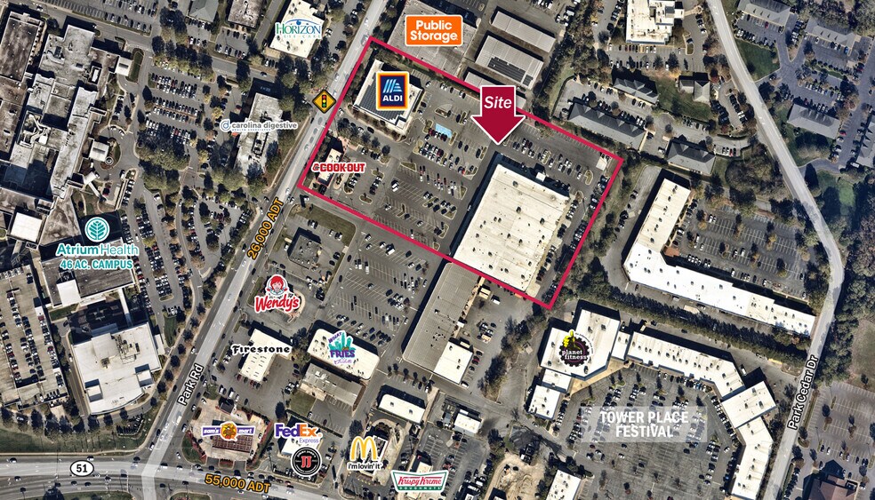 - Located directly off I-485 (154,000 ADT) with multiple access points along Park Road (26,947 ADT) and off Hwy 51/Pineville-Matthews Rd (61,919 ADT)