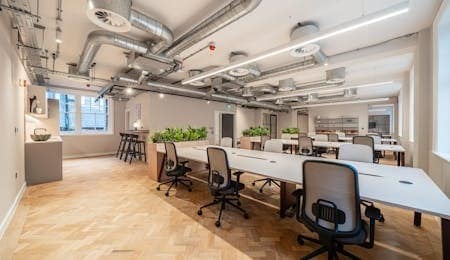 This well-appointed first-floor office offers 2,594 sq ft of bright, open-plan workspace with excellent natural light from large sash windows. Featuring high ceilings, modern lighting, and a flexible layout, it’s ideal for creative, professional, or collaborative teams seeking a central W1 location.
