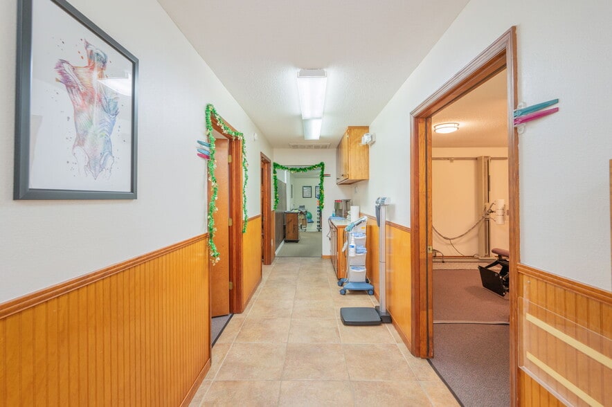 - Suite A includes private offices, multiple exam rooms with sinks, ADA compliant restroom, laundry room, and generous upstairs storage area.