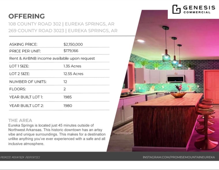 108 County Road 302 12 Unit Apartment Building Offered at $2,751,240 CAD at a 8% Cap Rate Eureka Springs, AR 72632