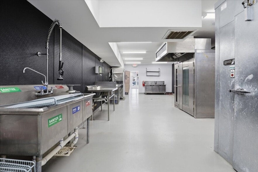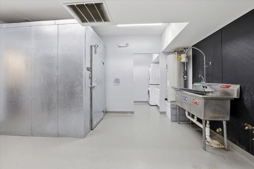 2 stoves, stacked washer and dryer, walk in freezer, several restaurant sinks, baking oven many extras. Has a sperate