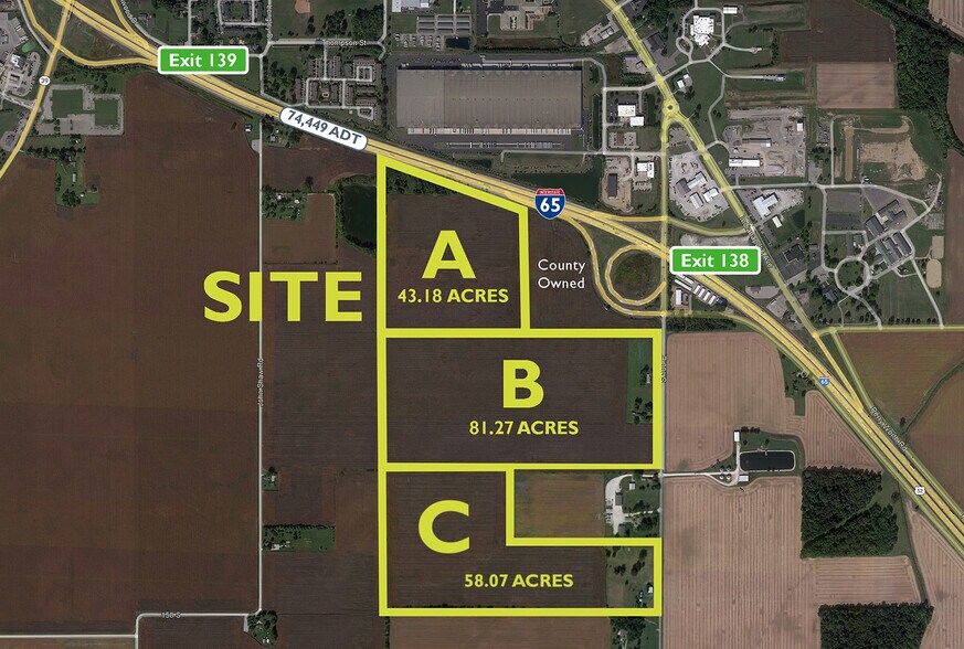 125 acres under contract - 58 acres remaining Property located at the I-65 interchange gateway to Lebanon from Indianapolis