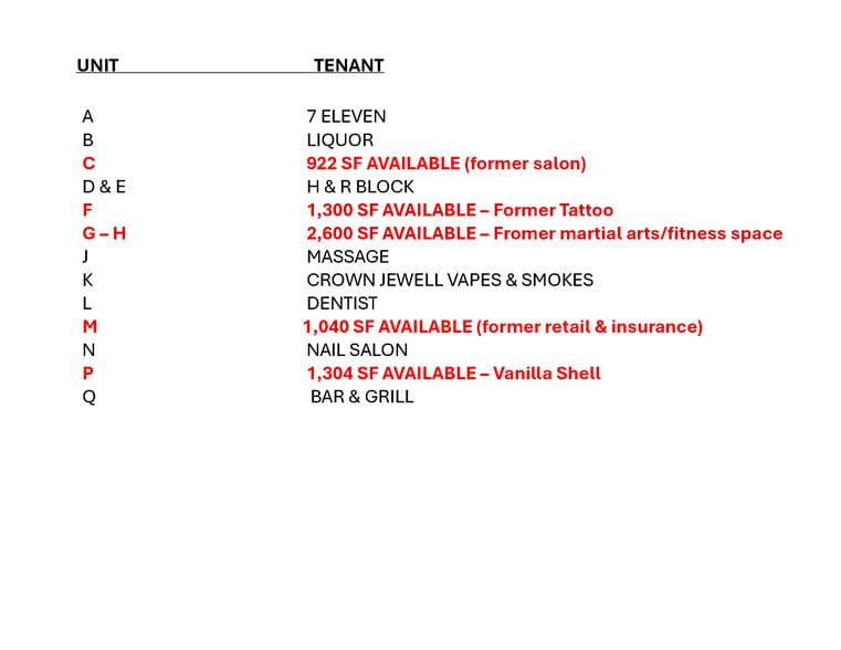 UNIT P - AVAILABLE - 1,304 SF - Vanilla shell, updated restroom