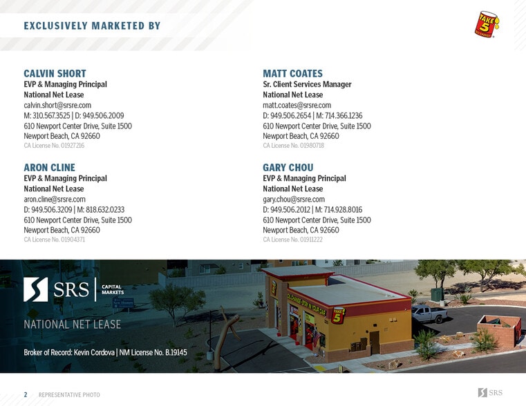 New Take 5 Oil | 15yr SLB | 29+ Unit Guaranty 10830 Unser Blvd NW 1,438 SF Retail Building Albuquerque, NM 87114 $3,985,442 CAD ($2,771.52 CAD/SF) 6% Cap Rate