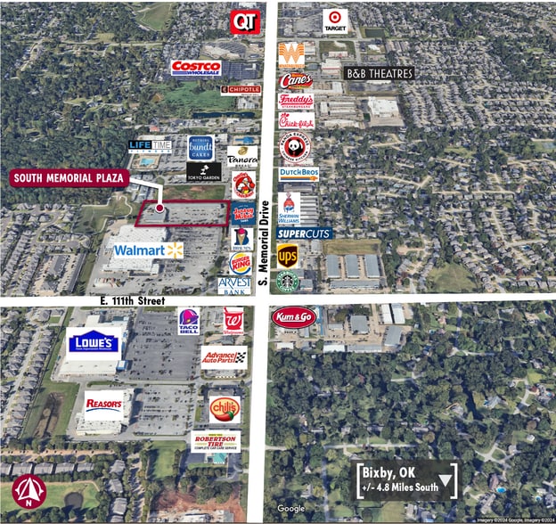 South Memorial Plaza 10848 S Memorial Dr 2,075 - 4,925 SF of Retail Space Available in Tulsa, OK 74133