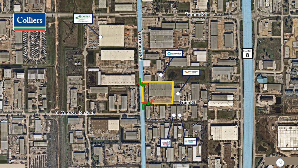 Property Overview • ± 112,347 SF • ± 10,000 SF office (two-story) • 32’ Clear height • 28 Dock doors • (4) Big Ass Fans • 30,000 lb levelers on every door • Dock lights & pads • Grade & Semi dock loading • Direct access to Brittmoore Road • Available 11/01/2025 • Sublease expires December 31, 2027 • Longer term available