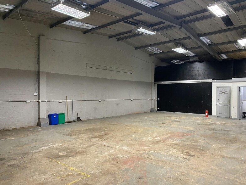 The warehouse forms an open plan storage/floor space. Lighting throughout is provided via fluorescent bulbs. The eaves height within the warehouse is