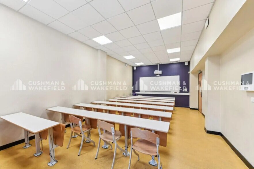 Cet espace en rez-de-chaussée bénéficie d’une entrée privative donnant directement sur rue, permettant un accueil fluide du public. Il se compose de trois grandes salles de formation, chacune conçue pour accueillir 46 personnes, offrant ainsi une capacité rare pour un ERP de 5e catégorie. L’aménagement inclut également un bureau indépendant et plusieurs sanitaires, dont un aux normes PMR, garantissant une accessibilité totale. La luminosité, les volumes et la configuration en font un espace immédiatement opérationnel pour des activités de formation, de réception du public ou d’encadrement.