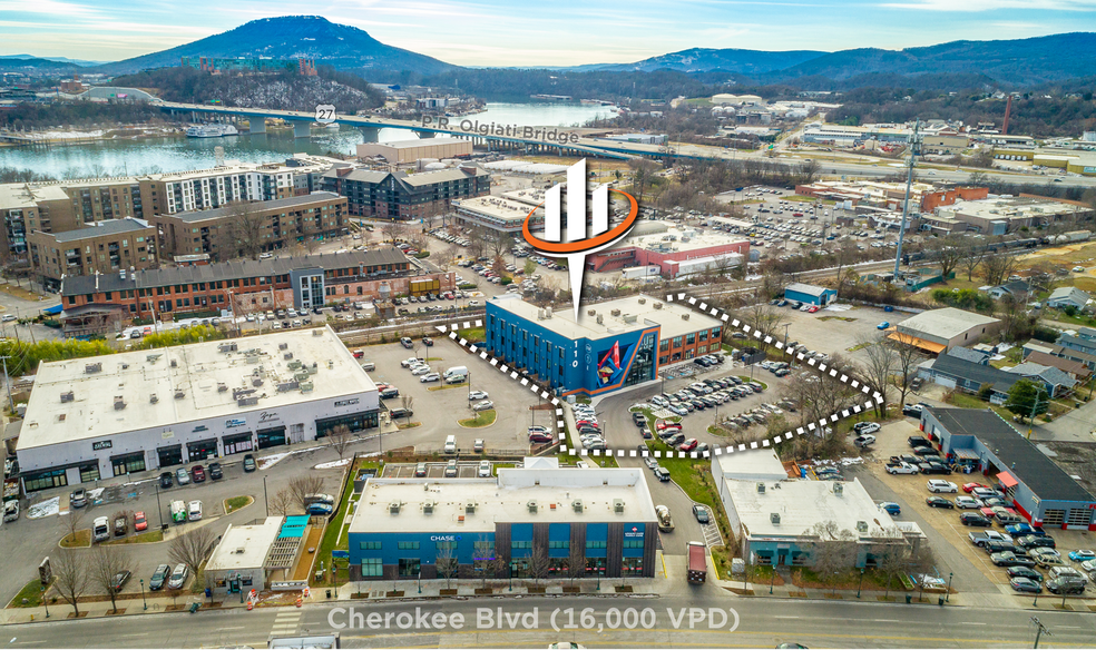 The asset benefits from riverfront adjacency, on-site parking, and walkable access to the national retailers, local boutiques, restaurants, and galleries that define the Northshore lifestyle. Nearby amenities include Publix, Whole Foods, Chipotle, Orangetheory Fitness, Starbucks, Coolidge Park, and the Walnut Street Bridge.