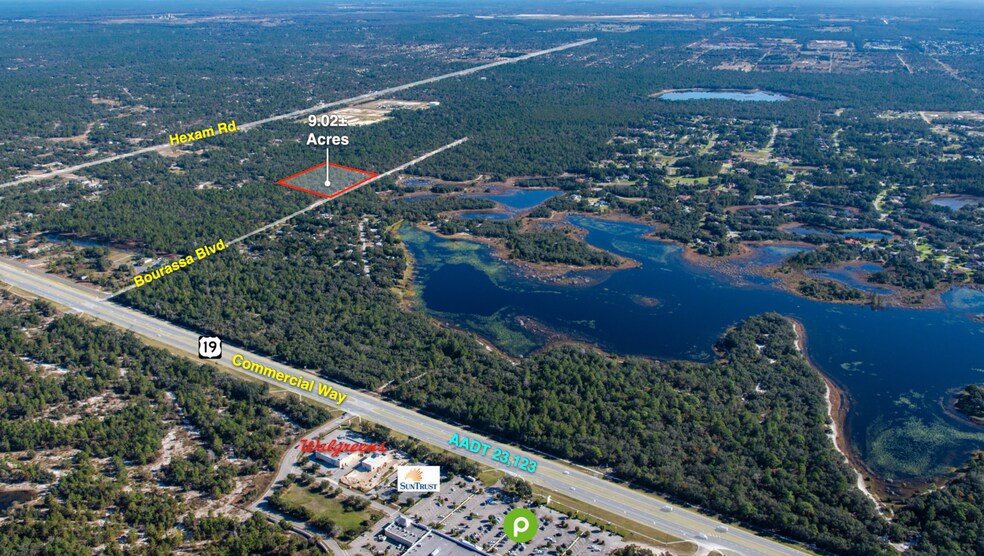 INCREDIBLE OPPORTUNITY for a developer to purchase 9.1 acres in the middle of the Lake Hideaway by Metro Places that is going in with 3700 homes and the country's largest man-made lagoon pool in Hernando County. Located east of US 19 and north of State Road 50 (Cortez). It's approved and land site work is currently being done for 2400 single family detached homes, 644 attached townhouses, 656 senior adult attached housing, a new charter school, community recreation, and for new supportive commercial and office spaces. This 9.1 acre property should be able to be rezoned for high-density residential based on the approval of the surrounding property. Potential for apartments or townhomes. Public sewer and water will be available nearby with the Lake Hideaway development going in now. The excitement for the coming Lake Hideaway Lagoon Community is HIGH, so call for more details! ***Capitalize on this extremely unique opportunity!*** The area offers so much and is a fast growing area!! Only 10 minutes to the Suncoast Parkway/Veteran's Expressway for easy and fast access to Tampa! Straight drive to Tampa International Airport which is only 45 minutes!! 10 minutes to the beach and sunsets and Pine Island! 5 minutes to kayaking, paddle-boarding, swimming in the the crystal clear Weeki Wachee Spring and River with the manatees or enjoy the Weeki Wachee State Park on the main spring head with Buccaneer Bay Water Park with tubing, slides, splash park, boat rides, and the world-famous Live Mermaid Shows! 10 minutes to Hernando Beach Coastal Community for boating, fishing, swimming, water sports, jet-skiing, hanging out on your boat at the flats with other boaters, beach bars and restaurants!! A short boat ride from Hernando Beach takes your to Anclote Island for an amazing day at the white sand and glowing clear waters of the island! Travel North from this site 10-20 minutes and enjoy Homosassa River and Crystal River swimming the clear springs with the manatees and eating at the restaurants/bars on the river...pull your boat right up to the tiki bars!! Quaint historic towns in every direction from Brooksville, Inverness, Crystal River, Dade City and more...enjoy the old town squares with coffee shoppes, antique and decor shoppes, festivals, craft and art shows, music concerts and so much more! The area offers so much and yet is so close to Tampa! Just over 1 hour to TOP US BEACHES!! Call today for more details!