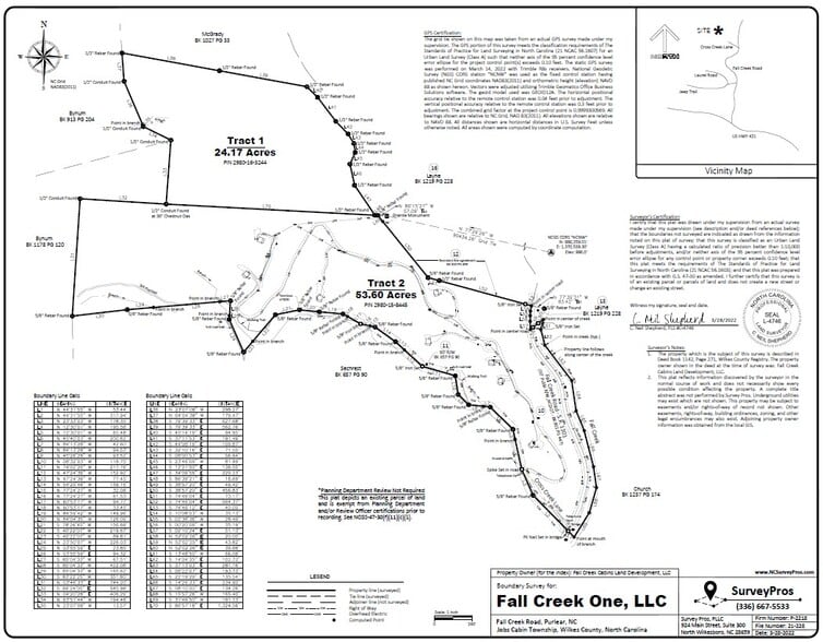 1105 Fall Creek Rd | Purlear, NC 28665. Situated on 77.77 acres across two parcels, this unique investment opportunity features a mix of completed and in-progress rental accommodations in a scenic mountain setting.