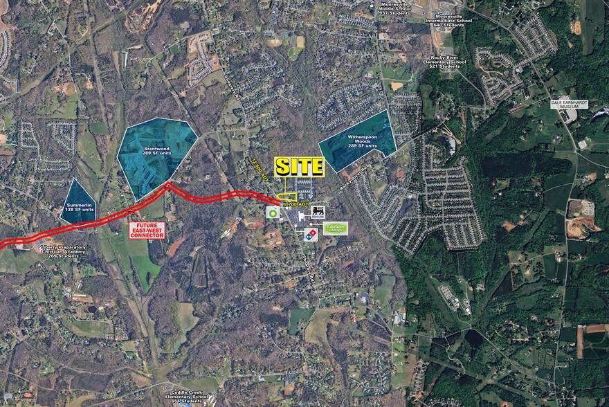 2.8 acre corner parcel at the intersection of Rocky River Rd & Shearers Rd Excellent visibility and access At the key intersection of future road improvements connecting Shearers Rd to Highway 115 via the new East West connector road Available for Lease or BTS Located within a high growth residential market