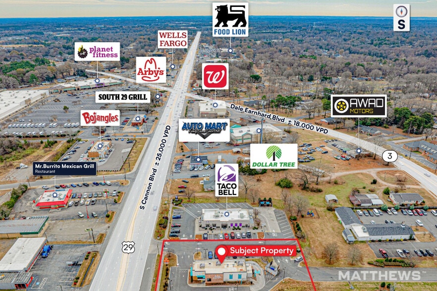 - Situated along South Cannon Boulevard (25,000 VPD) with strong traffic exposure, prominent frontage, and convenient ingress