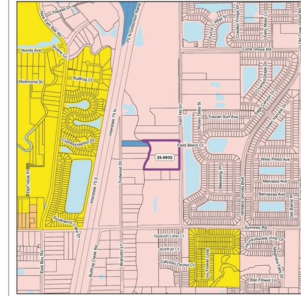 Approximately 10.5 Acres Buildable 53 units Single Family Units . Zoning Approved by Hillsborough County BOCC AR Agricultural Rural To PD Owner may retain 3 lots FOLIO number 77168.00OO and 77169.0000. 2 parcels