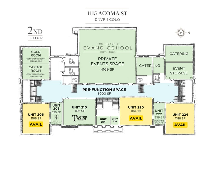 Limited availability! The historic Evans School in the Golden Triangle offers a few remaining spaces for office, retail, and restaurant tenants. Contact us for square footage and leasing details.
