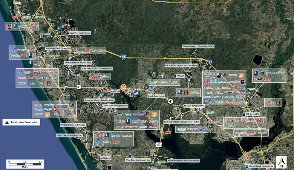 - Direct US-41 access and left turn access through new median at De Miranda Ave