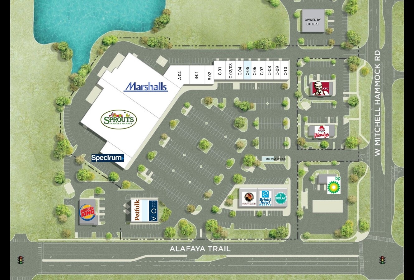 Central Square has a rarely available small shop space for lease at Alafaya Trail and Mitchell Hammock Rd. This center has over 1.8M annual visits with national retailers including: Sprouts, Marshalls, Noire Nail Bar, Sports Clips, Grain & Berry, Crave Cookies, PetFolk, Vio Med Spa and more!