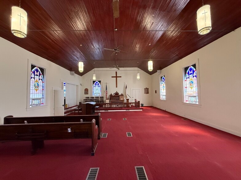 Lovely chapel available in the rolling hills on the outskirts of Lynchburg, VA. Main floor chapel is approximately 1858 Sf. Basement level is approximately 1858 SF with two restrooms and small gathering area. The basement is unfinished due to major foundation repair but offers a blank slate for future congregations to make it their own. Foundation renovation work was recently completed in Jan 2026 and two new sump pumps added. The lot is .91 ac in a beautiful rural setting and includes an outdoor pavilion, large lawn, and a cemetery. The new buyer would be expected to maintain the cemetery and honor any guests who may visit loved ones. Large, paved parking lot provides ample parking for a congregation. Demographics within a 15-minute drive are included in the listing.