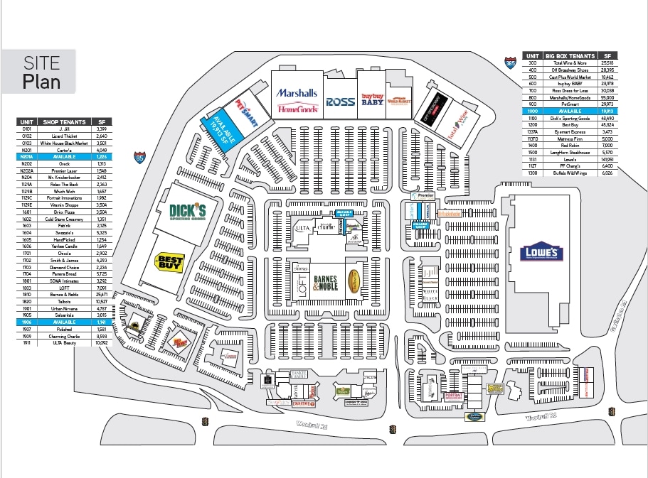 - Includes popular retailers like Panera, Ulta, and Barnes & Noble