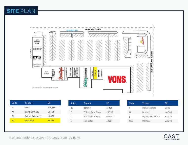 - Co-tenancy includes Pizza Hut, Del Taco, POT's Pub, Dotty's, Cricket Wireless, and O'Reilly Auto Parts