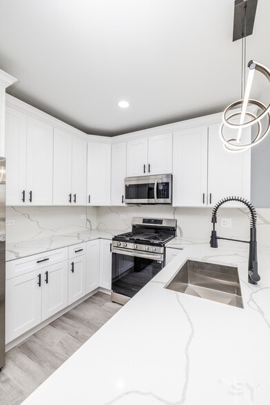 Brand New Construction Three Units. All units are 3 bed/ 2 bath with quartz counters, stainless appliances, in unit laundry, and wood floors throughout. Projected rent $7,200/month. March 2026 Delivery Date