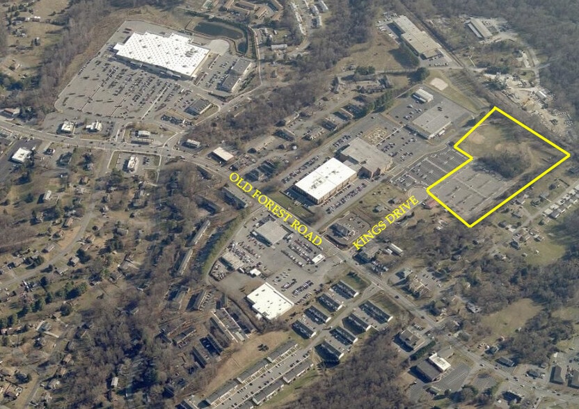 +/- 9.87ac parcel to be divided from Seller's larger tract. Property has public water and sewer available to the site with direct access from Kings Drive with signalized access at Old Forest Road. Property is partially improved with 300 parking spaces and a shared detention pond is in place.