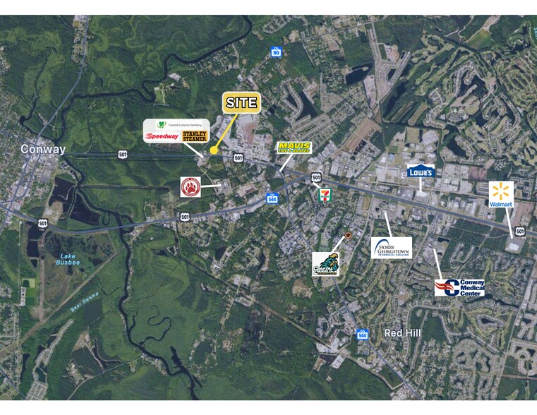 New commercial development on Hwy 501 Business in Conway, SC. Accepting tenant applications. Call to discuss build to suit or ground lease. The property is located near a signalized intersection of Hwy 501 Bus. and Hwy 90 and one of the last properties before crossing the bridge to downtown Conway. Horry County is one of the fastest growing counties in SC. Retail, office, medical, restaurant, QSR, etc
