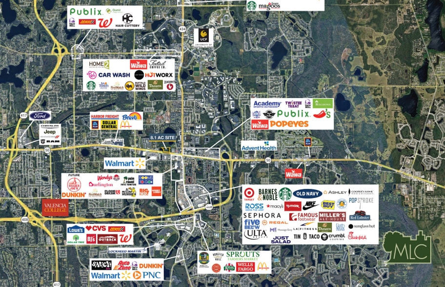 This property offers approximately 680 feet of highly visible frontage on East Colonial Drive (SR 50), one of East Orlando’s busiest business corridors. The location provides exceptional exposure with 58,000 daily drivers and strong connectivity to major transportation routes, including the nearby SR 408 East West Expressway. The site is well positioned for a variety of commercial uses and benefits from close proximity to major activity centers. It sits across from a Walmart Supercenter, 5 minutes from the University of Central Florida (UCF), and is also conveniently located near Waterford Lakes Town Center, one of the region’s premier retail and entertainment destinations. Together, these factors make this site an attractive development opportunity with excellent visibility and access to key daily drivers in the East Orlando market.