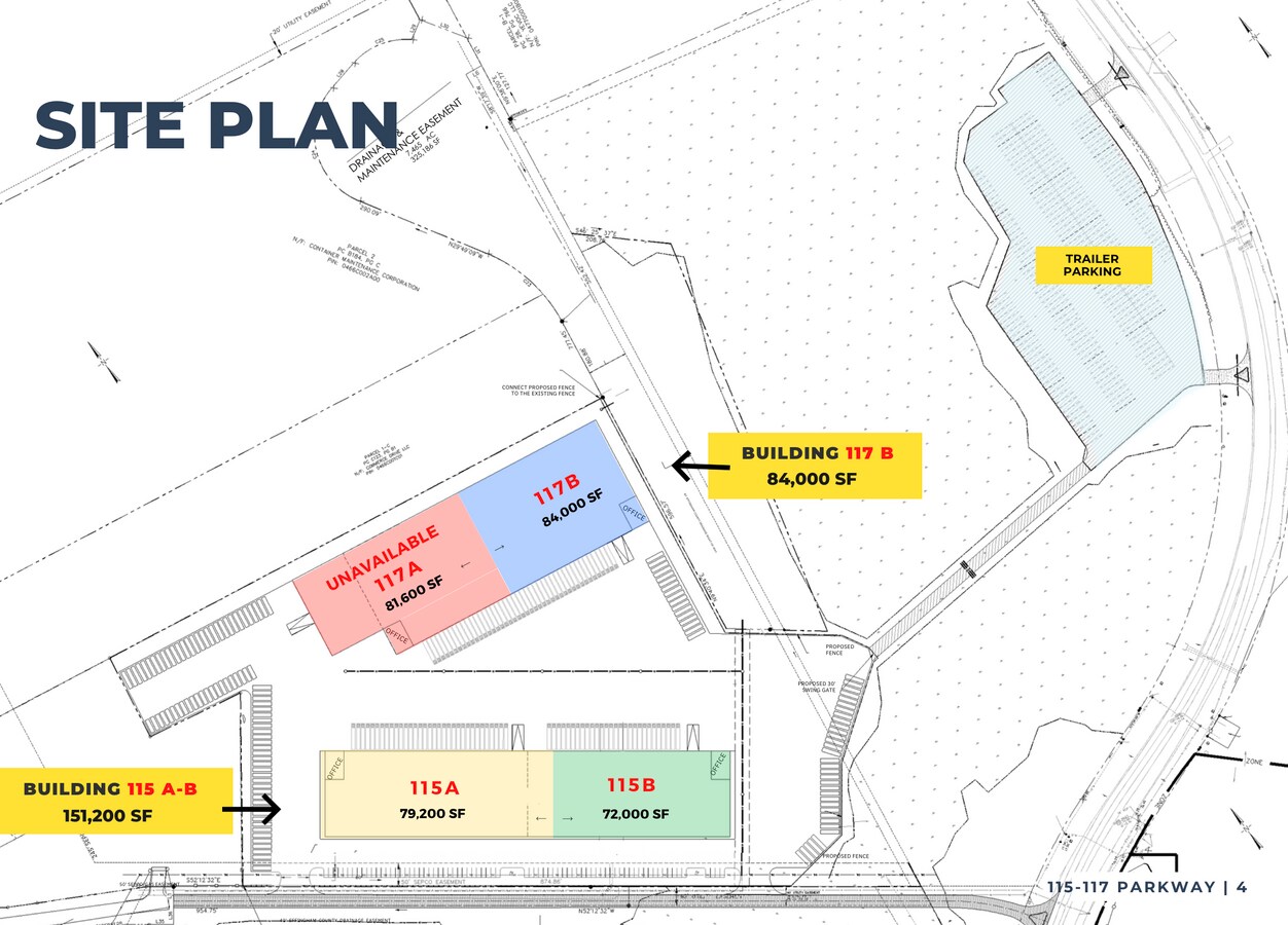 This premier 30-acre, brand-new industrial development features two state-of-the-art buildings totaling 316,800 SF. Building 115 A-B This flexible space can be leased as a portion of the building or as the entire building. For example, the following configurations are available: Building 115 A: 79,200 SF available, featuring 16 Loading Docks with dock levelers (9' x 10'), 1 drive-in door (24' x 20') with 70 ft Drive-In Ramp, 1 double door (24' x 20'), and a 3,075 SF office space. Building 115 B: 72,000 SF available, featuring 15 Loading Docks with dock levelers (9' x 10'), 1 drive-in door (24' x 20') with 70FT Drive-In Ramp, 1 double door (24' x 20'), and a 3,075 SF office space Building 117B 84,000 SF available, featuring 11 Loading Docks with Dock Levelers (9' x 10'), 1 drive-in door (24' x 20') with 70FT DRIVE-IN Ramp, 1 double door (24' x 20'), and a 3,075 SF office space for convenient administrative or operational use. Durable Construction: Buildings 115 and 117 are constructed with fiber-reinforced concrete 4,500 PSI slabs engineered for long-term durability. Trailer Parking Trailer parking is available for lease from 4 to 7 acres. The full 7-acre area adjacent to the buildings can accommodate up to 360 trailers and is zoned for heavy industrial use. Strategic Location: The property is located in the Effingham Industrial Park along Highway 21 at the Savannah–Rincon border. Just 7 miles from the Port of Savannah, this heavy industrial site offers excellent access to major regional transportation routes—representing a rare opportunity to secure modern warehouse space in one of Georgia’s most active industrial corridors.