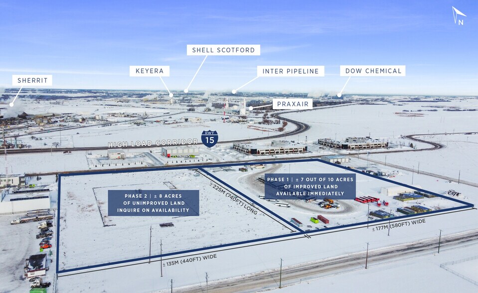 7 acres of compacted, graveled, fenced, gated and well-lit industrial yard space for lease in Alberta’s Industrial Heartland Ready for parking, storage, outdoor staging, fabrication and assembly work Immediate access to Alberta’s high load corridors and strategically located on the North end of Fort Saskatchewan Multiple power panels distributed throughout the yard with plug-ins available for vehicle and heavy equipment parking Quonset with heat, office trailer, lunch trailer and wash-car trailer on site and available