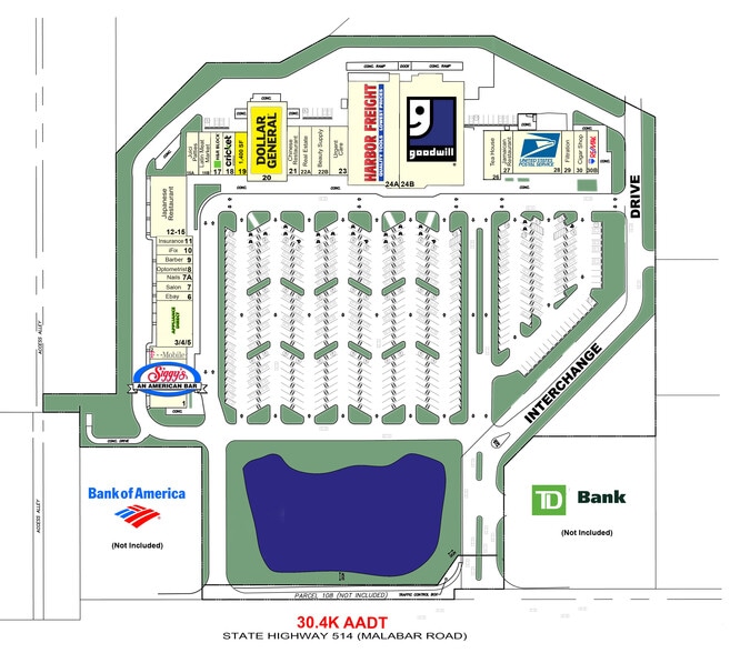 - Easy access at signalized intersection of Malabar Rd. and Interchange Dr. N