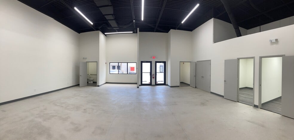 1,688 SF. CLIMATE-CONTROLLED SHOWROOM & OFFICE + WAREHOUSE. Open area ideal for a showroom or working area with polished floors, LED lights and 2 restrooms. The space features 2 private offices with new LVT flooring and LED lights. In addition, you will have a small warehouse area (no A/C) with a grade level roll-up door. 24 hr access. *Additional charge of $100.00 per month for water and trash services (some restrictions apply).
