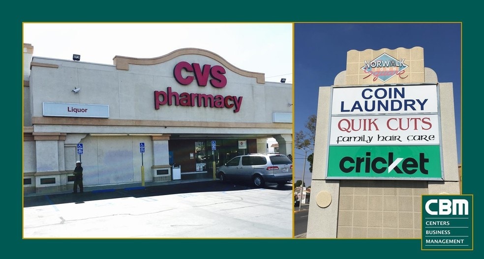 Rosecrans / Pioneer | Norwalk Town Center (CVS) Retail space for lease in CVS anchored neighborhood shopping center. Approx. 1,763 SQFT unit (potential to be divided). Property features incredible visibility, convenient access, and ample parking sizable on-site lot. Ideal for food, medical, retail. CVS to undergo exterior upgrades. Shop spaces and parking lot recently rehabbed. Prime Norwalk location on heavily trafficked signalized intersection. Freeway close, with easy access to 605, 5 & 105 FRWYS. Countless national retailers in immediate vicinity.
