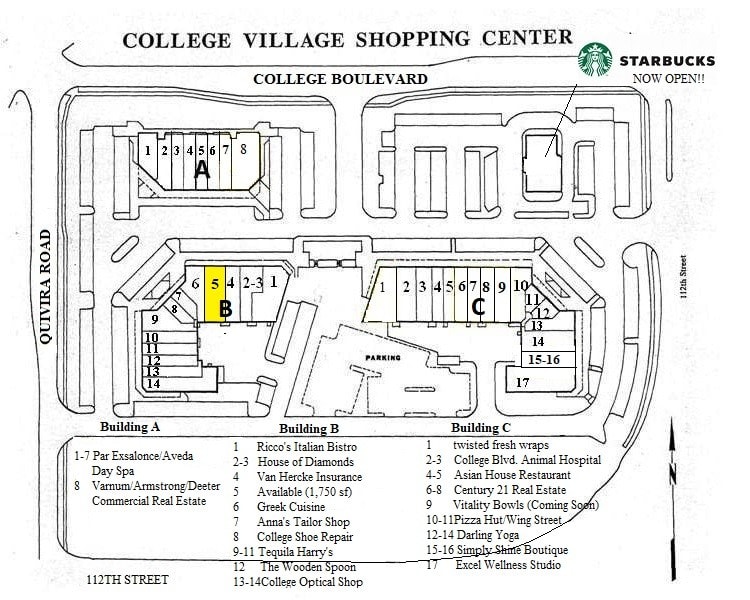 College Village Shopping Center 11705-11849 College Blvd 3,500 SF of Office/Retail Space Available in Overland Park, KS 66210