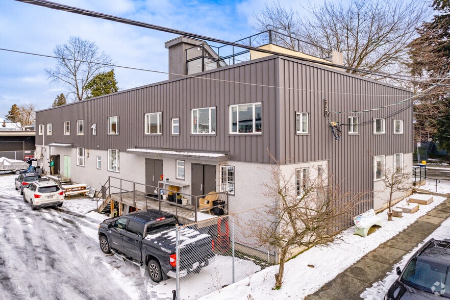 The property is situated on Odlum Drive in Vancouver, British Columbia, within a two-story multi-tenant building. It offers office and light commercial space with on-site parking and a rooftop patio. The location provides connectivity to Clark Drive and nearby arterial routes, supporting access to Downtown Vancouver and surrounding commercial districts.