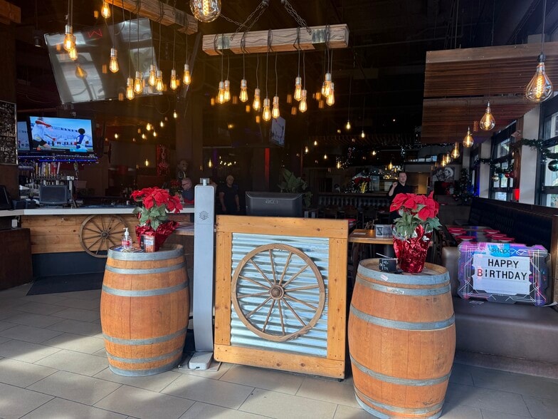 - Fully built-out restaurant with two bars and an elevated stage for live performances.
