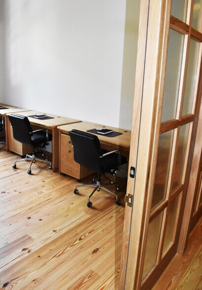 Alton Office - A furnished office with custom made desks with power, ergonomic desk chairs, and lockable cabinets is great for teams of up to 14. Monthly Fee includes daily cleaning, staffed reception, and a dedicated onsite team for administrative services. Also included in the membership: access to over 5,000 square feet of onsite communal workspace, a barista kitchen with snacks, all utilities, exclusive member perks, monthly guest allowance, access to The Malin's network of bookable spaces, and connectivity with a community of professionals.