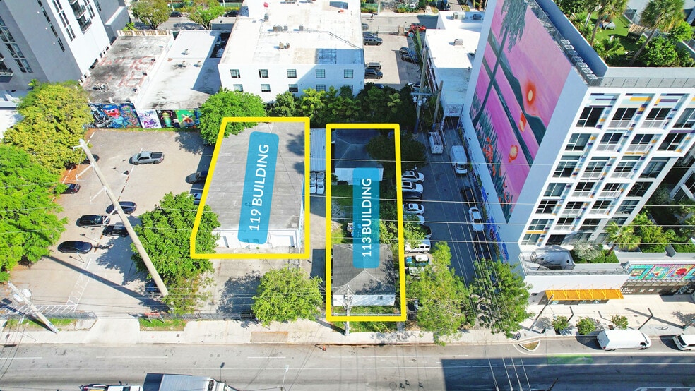 113–119 NW 24 Street presents a rare opportunity to lease a combined ±6,450 SF of retail, food & beverage, and warehouse/flex space in the heart of Wynwood’s entertainment district. The property offers two distinct leasable areas that can be delivered individually or combined, allowing for a single-tenant compound or multi-tenant configuration. 113 NW 24 Street features ±2,000 SF of retail/F&B space across two structures with strong frontage and outdoor activation potential, while 119 NW 24 Street includes a ±4,450 SF warehouse/flex building with 16’ clear heights, roll-up access, and gated parking. PREMISES MAY BE LEASED SEPARATELY OR AS A SINGLE COMBINED OFFERING. RARE OPPORTUNITY TO SECURE ONE OR BOTH SPACES IN THE HEART OF WYNWOOD.