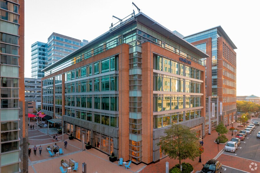 Situated at the corner of Democracy Drive and Library Street, this portion of Reston Town Center is a mixed use project consisting of retailers and office space. With its immediate access to Dulles Access Road, the building is 1.6 miles from the Wiehle-Reston East Metro and 7 miles from Dulles International Airport. There are many amenities in the vicinity as an added convenience for employees and clients. Some of those include restaurants like North Italia, Jackson‘s Mighty Food and Lucky Lounge, Mon Ami Gabi, and many others. The Hyatt Regency is only 4 blocks away so finding a place for potential clients to stay is a breeze.