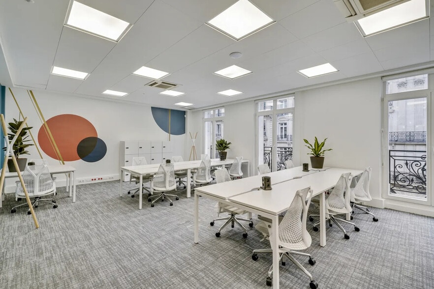 Discover a private office space of 190 m² in the heart of the 9th arrondissement of Paris. Located on the 3rd floor of a stunning Haussmannian building at 12 rue Auber, this space combines the charm of the old with a modern and functional design. Designed to accommodate up to 25 workstations, this bright and well-organized office has been completely redesigned to offer an optimal work experience. It is equipped with a fitted kitchen, air conditioning, several meeting rooms, balconies, and an elevator, ensuring comfort and productivity. Renting offices at 12 rue Auber, Paris 9, offers several advantages. Firstly, the central location in the 9th arrondissement of Paris provides remarkable accessibility, being close to numerous metro stations, train stations, and various transportation options. This facilitates travel for employees and visitors, which is essential for a dynamic company. Moreover, the work environment in this building is conducive to concentration and productivity. The offices are designed to offer an ergonomic and comfortable space, with modern facilities and state-of-the-art technological equipment. The common areas are also arranged to promote collaboration and the exchange of ideas among teams. Additionally, the surrounding neighborhood offers a multitude of services and amenities, including restaurants, cafes, shops, and green spaces, creating a pleasant living environment for employees. This diversity of offerings contributes to the balance between professional and personal life, which is essential for employee well-being. In summary, renting offices at 12 rue Auber, Paris 9, not only offers a strategic and convenient location but also a stimulating and fulfilling work environment, promoting the success and professional growth of businesses and their employees.