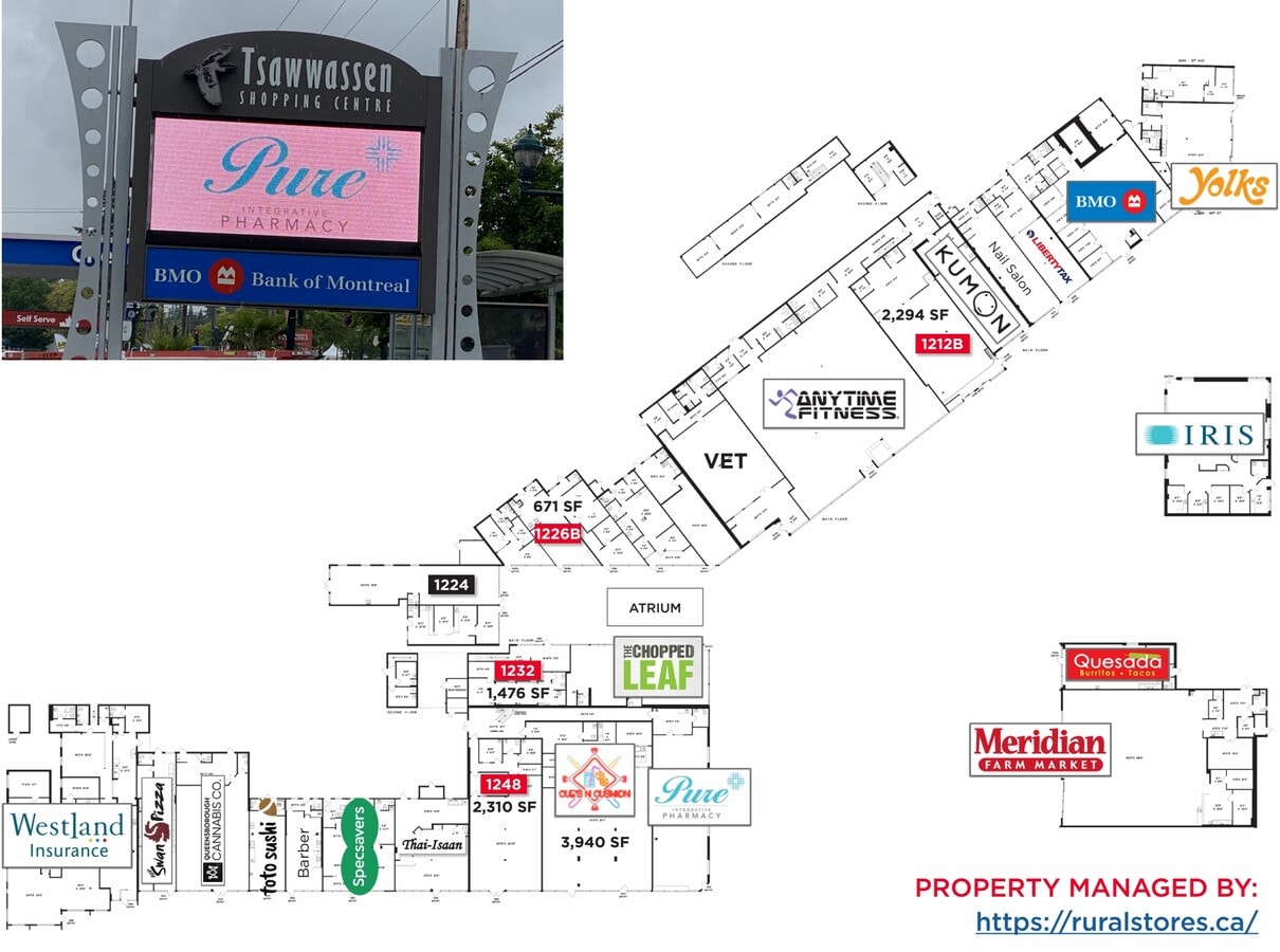 Tsawwassen Shopping Centre offers a prime retail leasing opportunity in one of South Delta’s most vibrant commercial corridors. Strategically located at 1200–1288 56th Street, this 57,000 SF open-air center benefits from high visibility, strong pedestrian traffic, and seamless access to major routes including Highway 17 and BC Ferries. The center is anchored by a diverse mix of national and local tenants, including Anytime Fitness, Kumon, Specsavers, and Meridian Farm Market, creating a dynamic retail environment that draws consistent footfall.