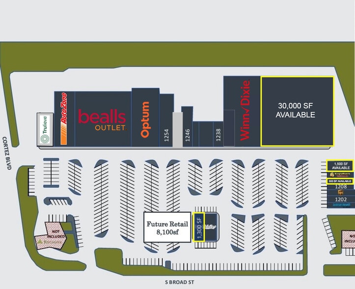 Located on the northwest corner of Cortez Boulevard and S. Broad Street - the busiest intersection in Brooksville and center of the retail activity for the city. Traffic Counts: 29,000 AADT on S. Broad Street 25,000 AADT on Cortez Boulevard