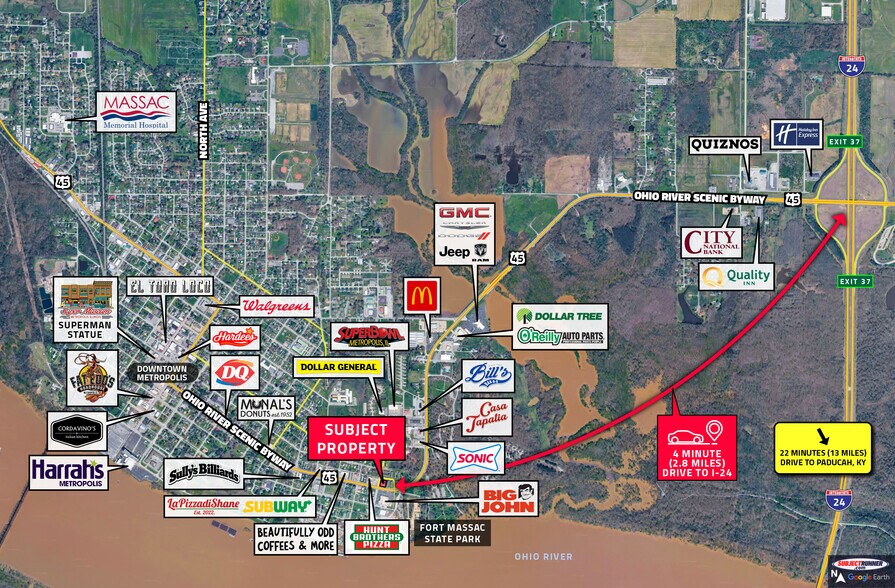 Strategically positioned directly across from Big John’s Super Store, the only grocery store in Metropolis, this location benefits from steady daily consumer flow. The property also offers excellent accessibility with close proximity to I-24, area hospitals, and major retail corridors.